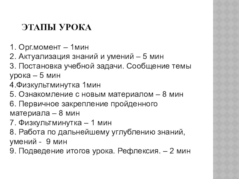 Свой урок я построила, учитывая объём и сложность учебного материала