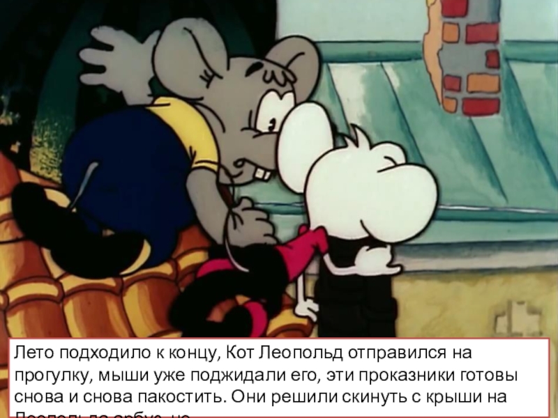 Слайд 39Лето подходило к концу, Кот Леопольд отправился на прогулку, мыши уже