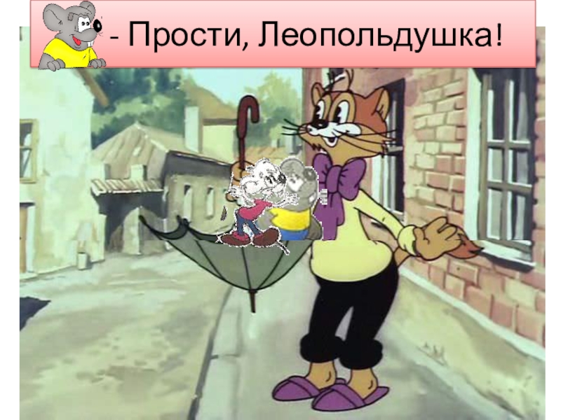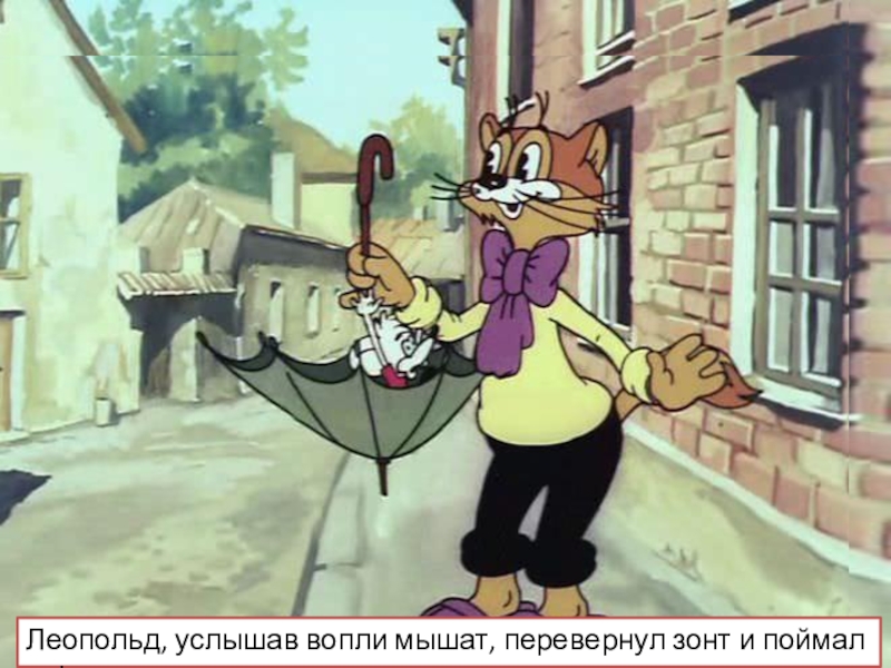 Слайд 41Леопольд, услышав вопли мышат, перевернул зонт и поймал их!