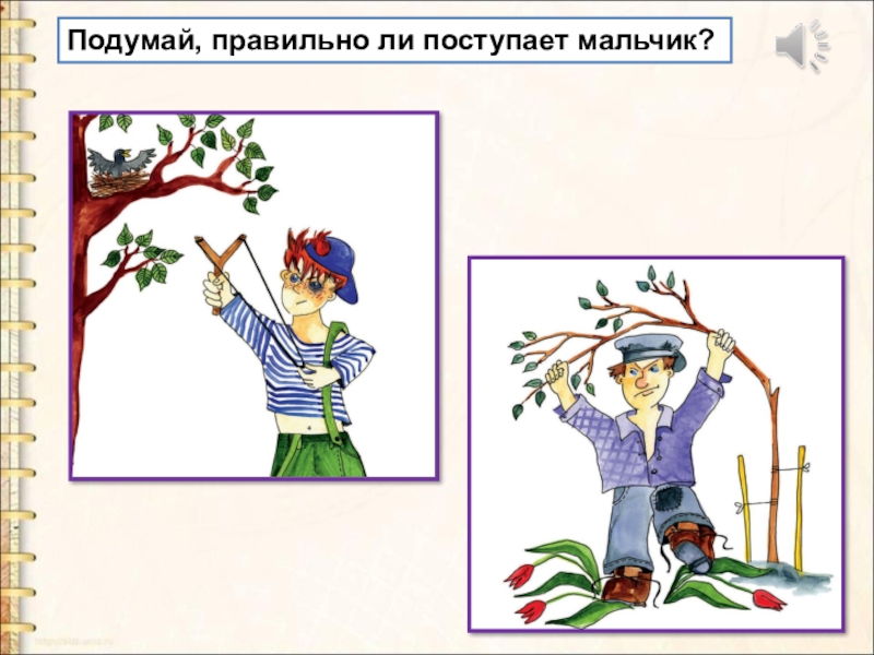 Слайд 4Подумай, правильно ли поступает мальчик?