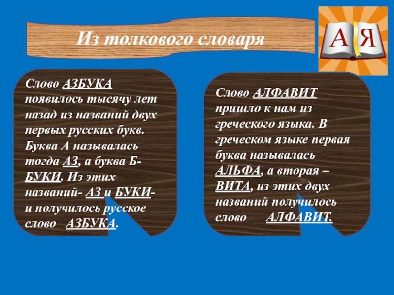 Слово АЛФАВИТ пришло к нам из греческого языка. В греческом языке первая буква называлась АЛЬФА, а вторая –ВИТА, из этих двух названий получилось слово АЛФАВИТ.