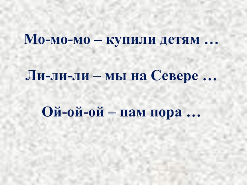 Мо-мо-мо – купили детям …Ли-ли-ли – мы на Севере … Ой-ой-ой – нам пора …