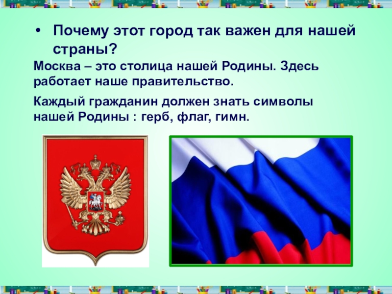 Каждый гражданин должен знать символы нашей Родины : герб, флаг, гимн.