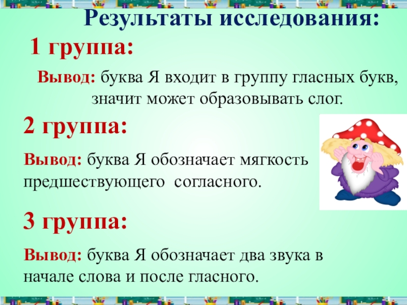 Вывод: буква Я обозначает два звука в начале слова и после гласного.