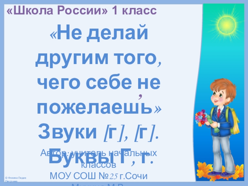 Презентация, доклад к уроку обучения грамоте (чтение) в 1 классе Не делай другим того, чего себе не пожелаешь. Буквы Г, г