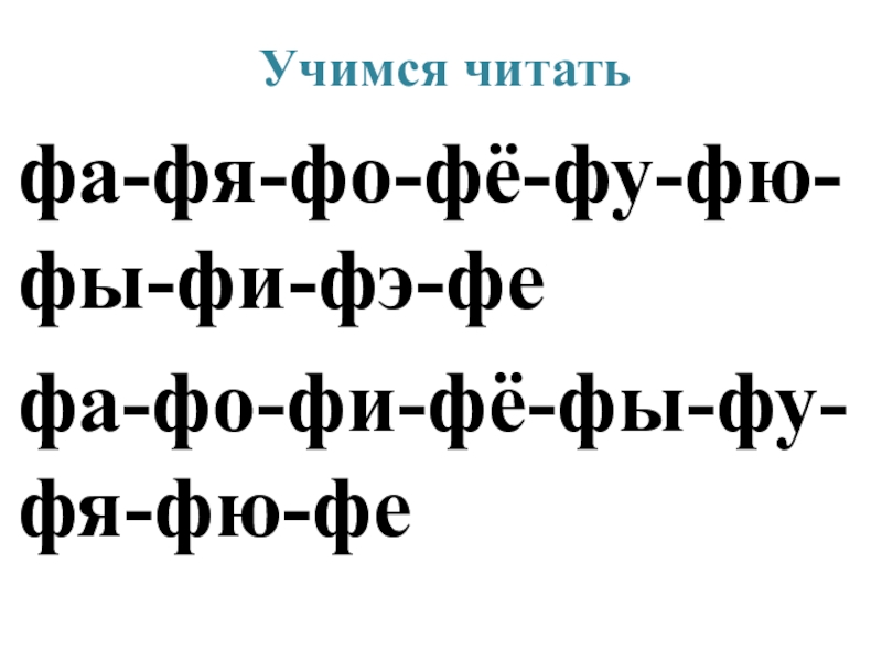 Учимся читатьфа-фя-фо-фё-фу-фю-фы-фи-фэ-фефа-фо-фи-фё-фы-фу-фя-фю-фе
