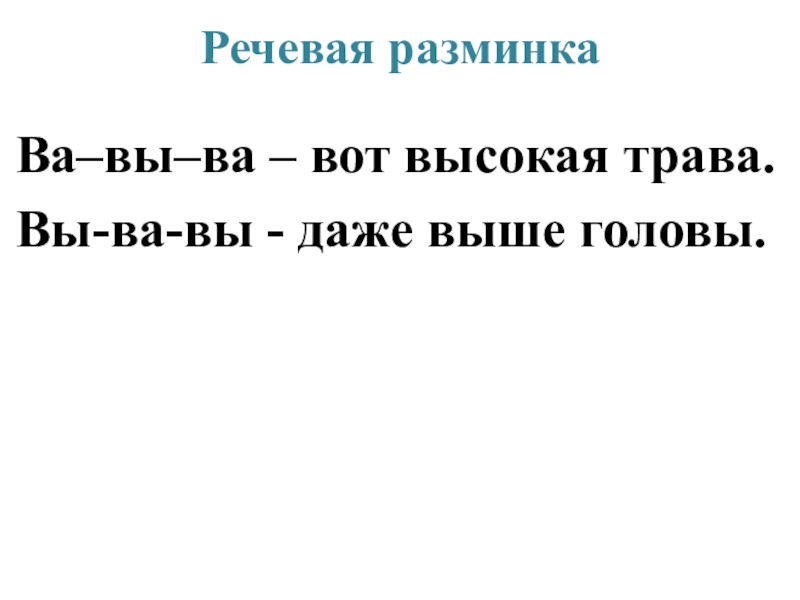 Речевая разминкаВа–вы–ва – вот высокая трава.Вы-ва-вы - даже выше головы.