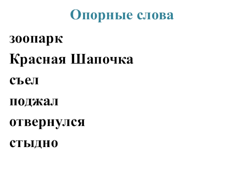 Опорные словазоопаркКрасная Шапочкасъелподжалотвернулсястыдно