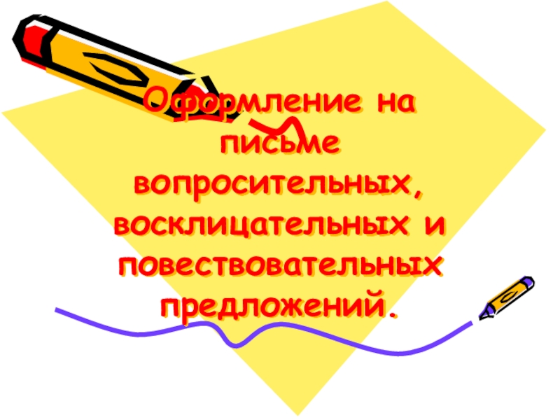 Слайд 1 Оформление на письме вопросительных, восклицательных и повествовательных предложений.