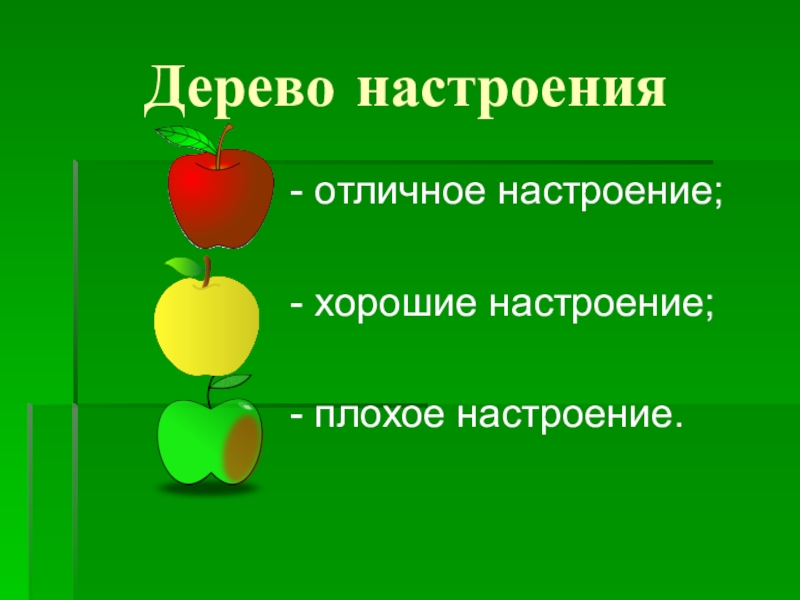 Дерево настроения   - отличное настроение;   - хорошие настроение;   - плохое настроение.