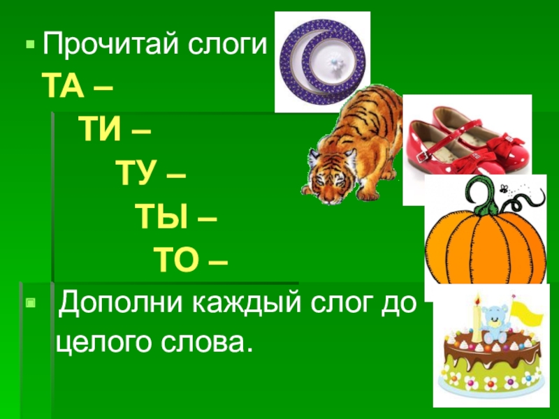 Прочитай слоги  ТА –   ТИ –     ТУ –