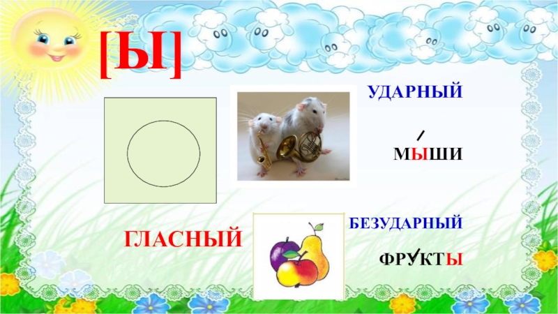 [Ы]ГЛАСНЫЙ   УДАРНЫЙМЫШИБЕЗУДАРНЫЙФРУКТЫ