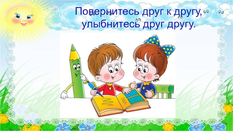 Слайд 3Повернитесь друг к другу, улыбнитесь друг другу.