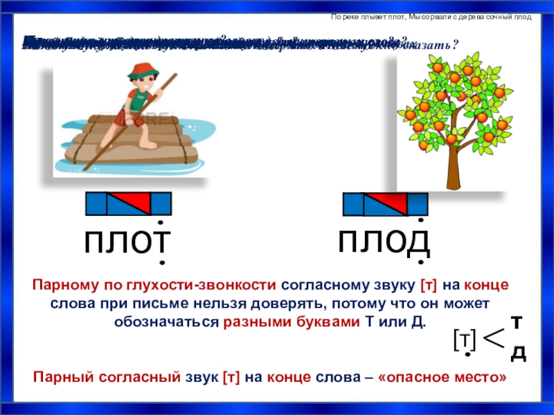 Парному по глухости-звонкости согласному звуку [т] на конце слова при письме нельзя доверять, потому что он может обозначаться разными буквами Т или Д.