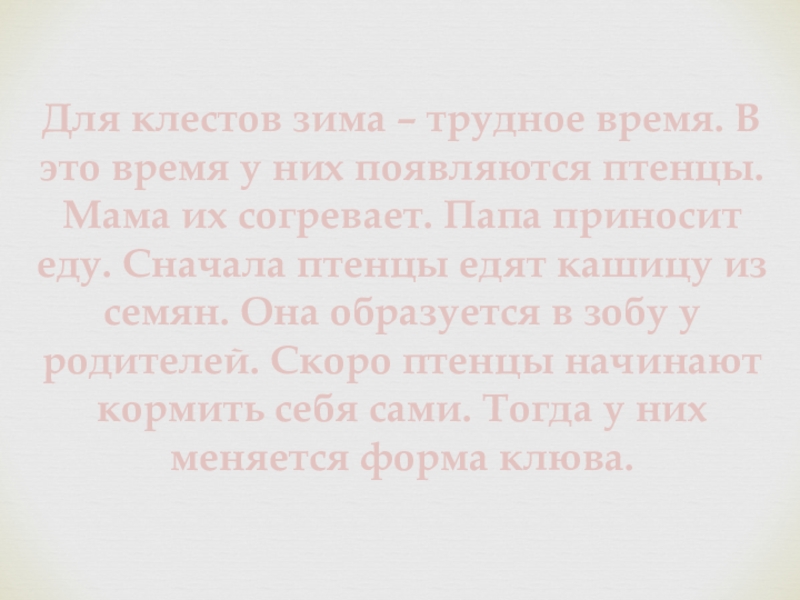 Слайд 12Для клестов зима – трудное время. В это время у них