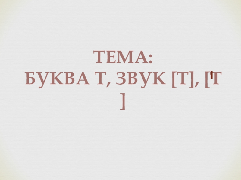 ТЕМА:Буква Т, ЗВУК [т], [т ]