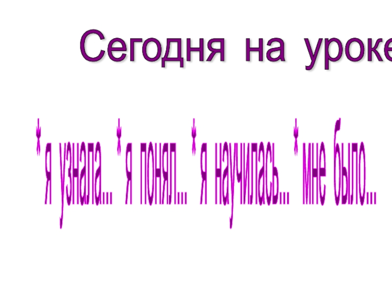 Сегодня на уроке * я узнала... * я понял... * я научилась... * мне было...