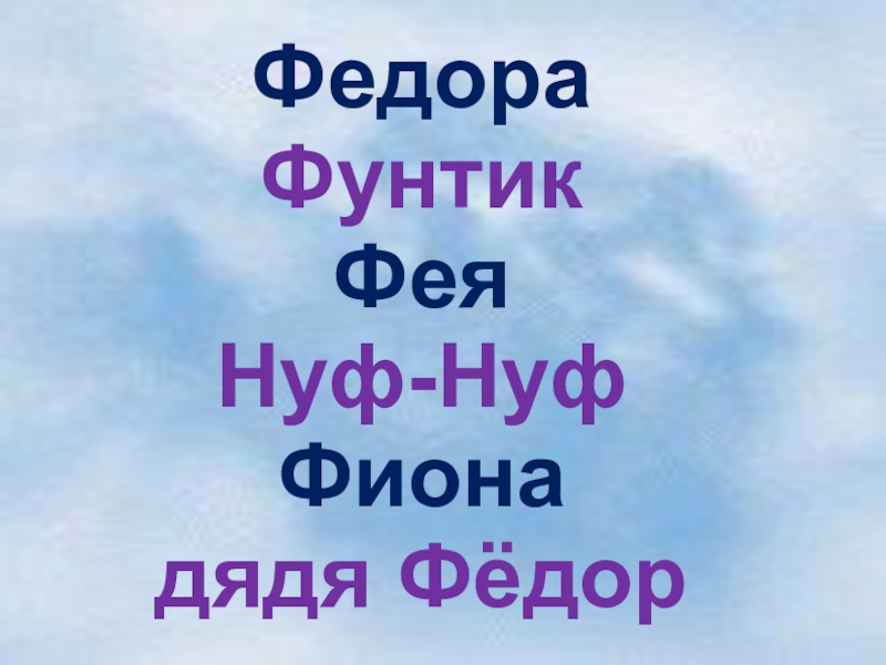 ФедораФунтикФеяНуф-НуфФионадядя Фёдор
