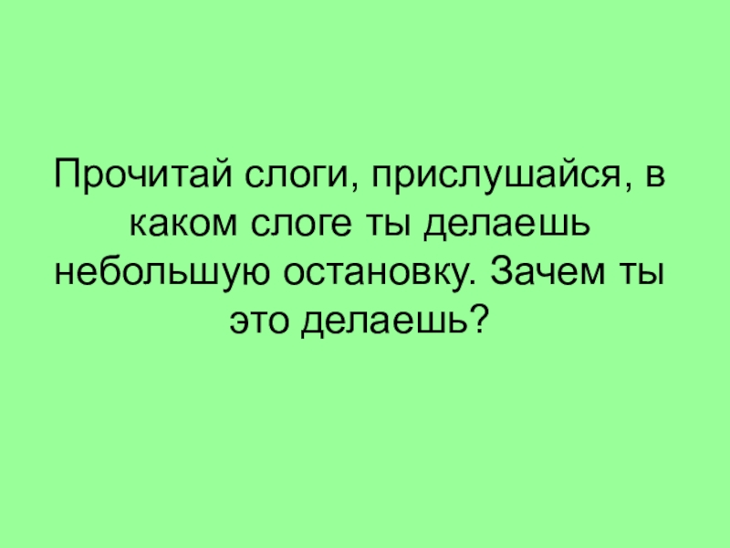 Слайд 16Прочитай слоги, прислушайся, в каком слоге ты делаешь небольшую остановку. Зачем