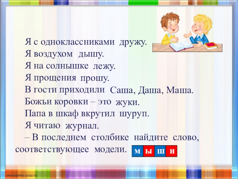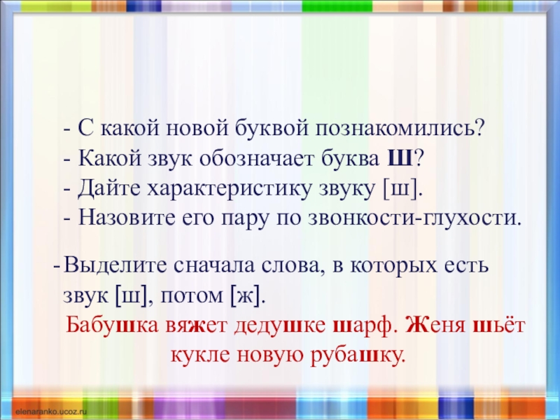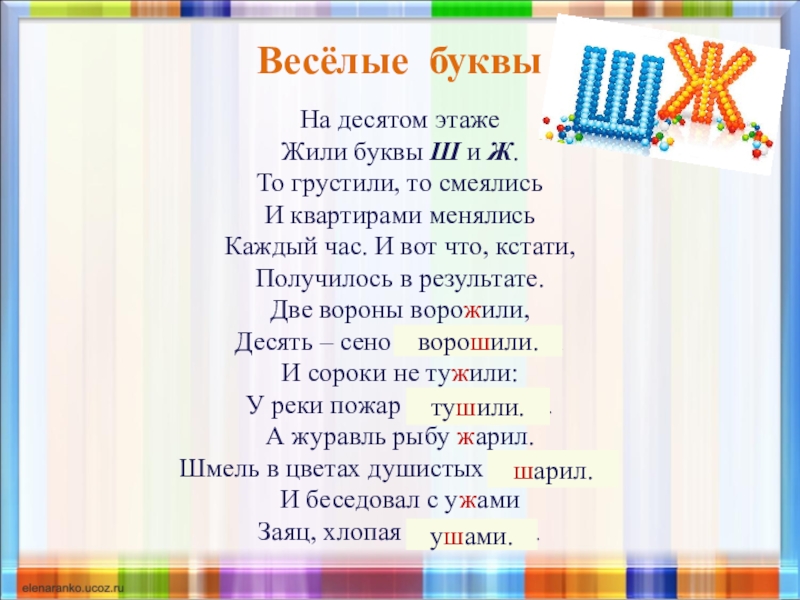 Выделите сначала слова, в которых есть звук [ш], потом [ж].