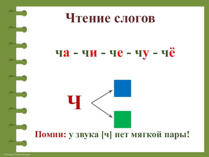 ча - чи - че - чу - чёЧПомни: у звука [ч] нет мягкой пары!Чтение слогов