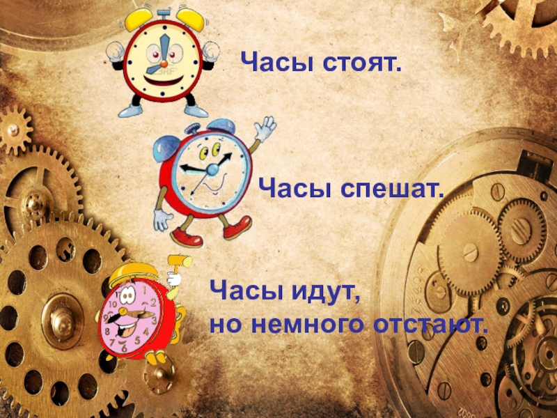 Часы стоят.Часы спешат.Часы идут, но немного отстают.