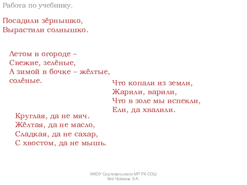 МКОУ Сортавальского МР РК СОШ №6 Чуйкина Э.А.