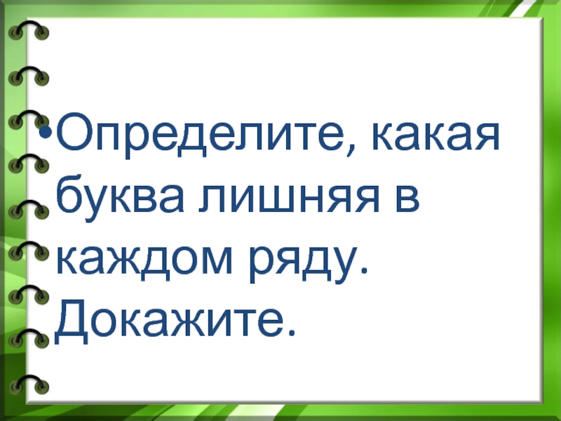 Слайд 21Определите, какая буква лишняя в каждом ряду. Докажите.