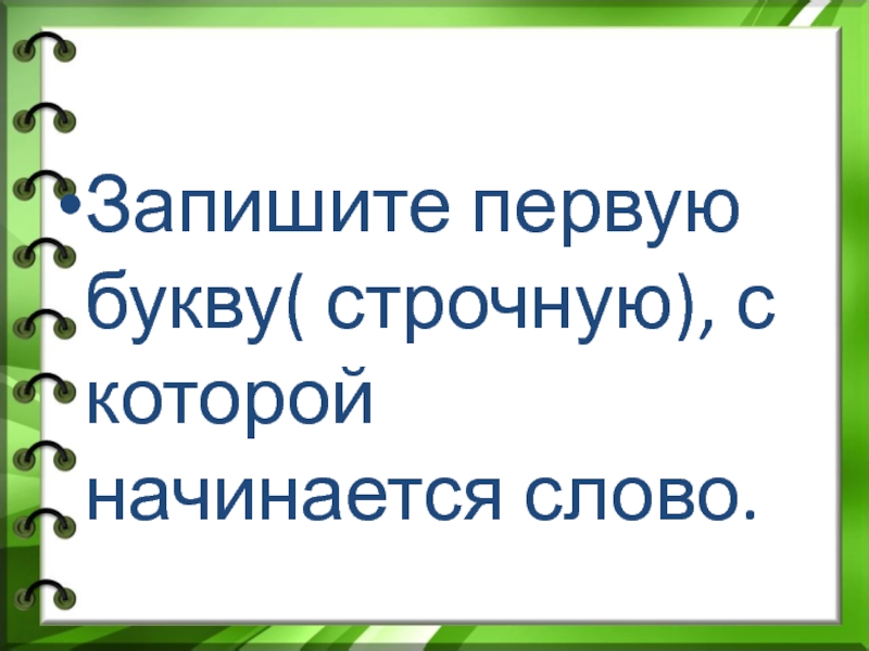 Слайд 2Запишите первую букву( строчную), с которой начинается слово.
