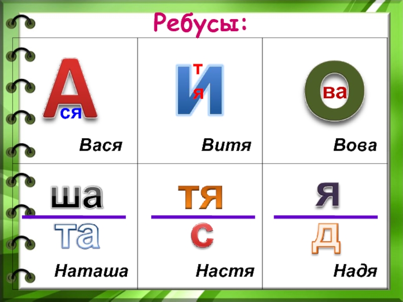 Вася Витя Вова Наташа Настя Надя Ребусы:тявася