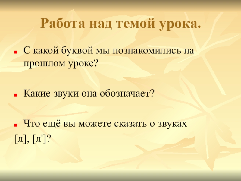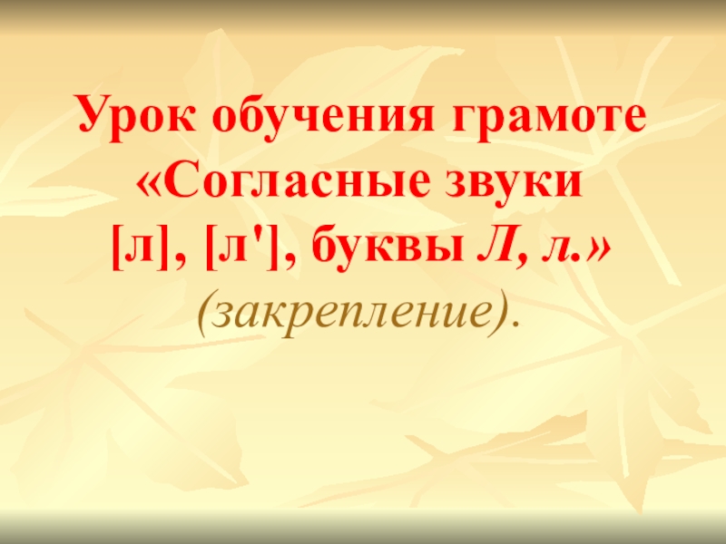 Презентация, доклад к уроку обучения грамотеСогласные звуки [л], [л'], буквы Л, л. (закрепление).