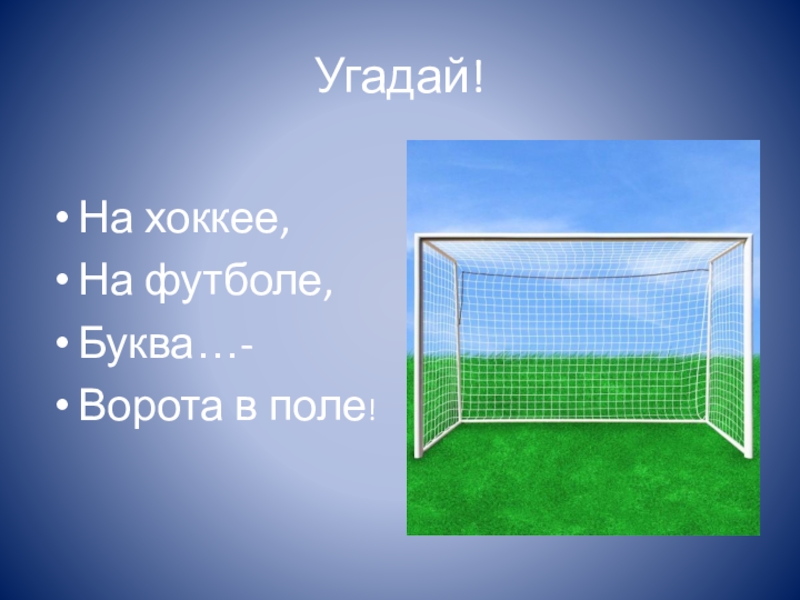 Угадай!На хоккее,На футболе,Буква…-Ворота в поле!