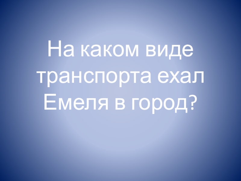 Слайд 17На каком виде транспорта ехал Емеля в город?