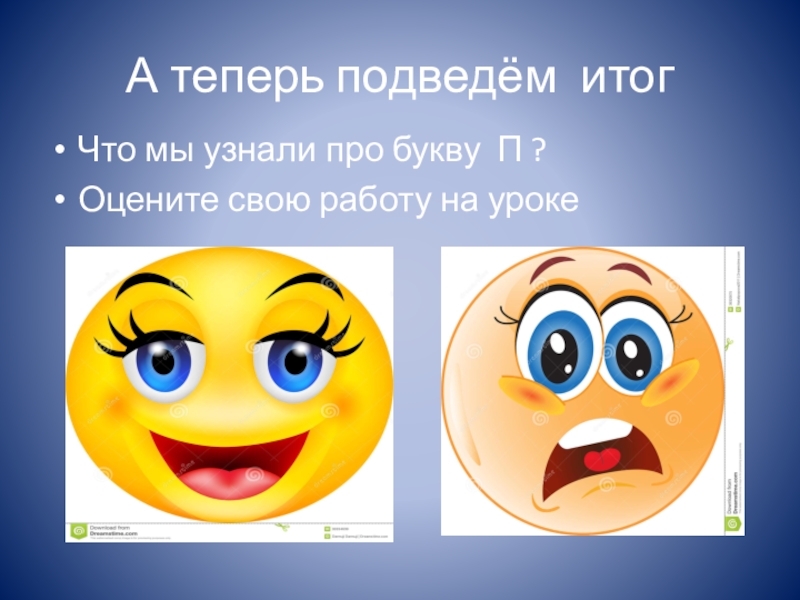А теперь подведём итогЧто мы узнали про букву П ?Оцените свою работу на уроке