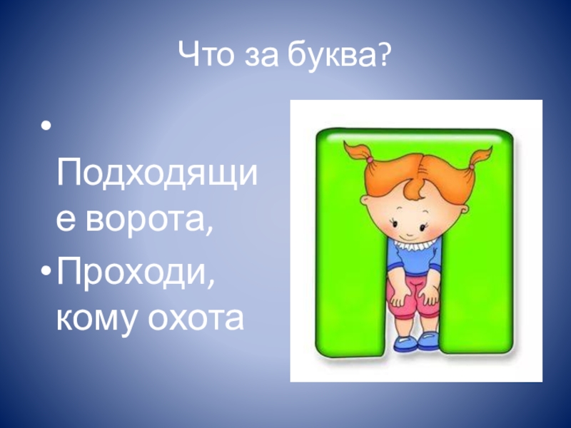Что за буква? Подходящие ворота,Проходи, кому охота
