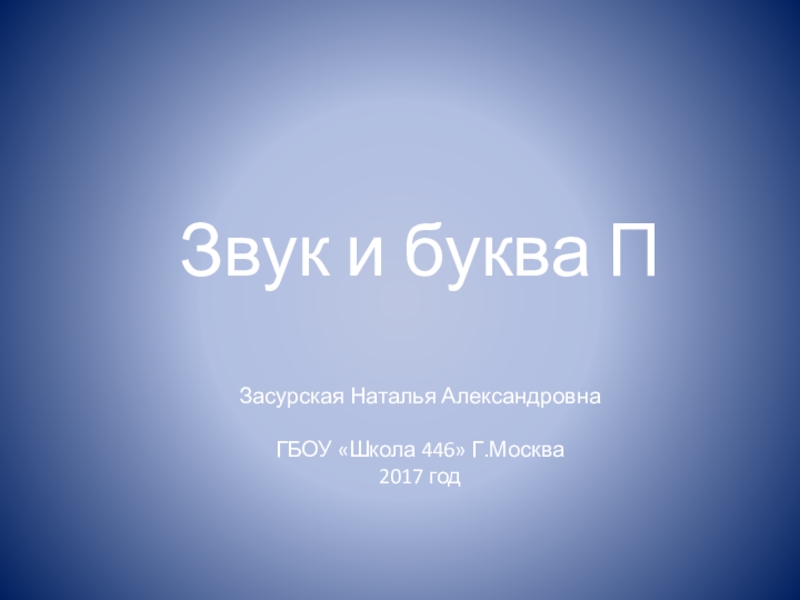 Слайд 1Звук и буква П Засурская Наталья Александровна ГБОУ «Школа 446» Г.Москва 2017 год