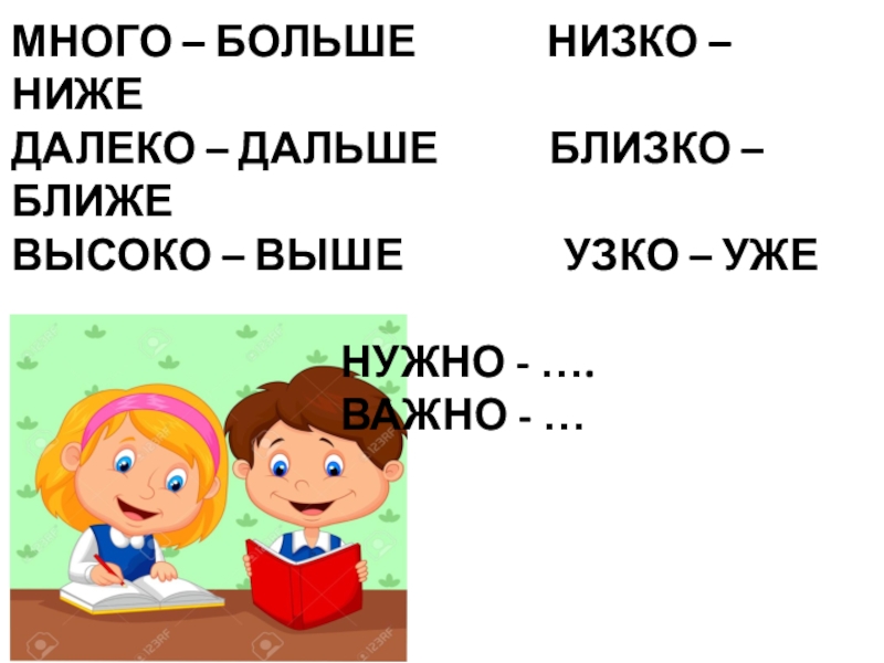 МНОГО – БОЛЬШЕ       НИЗКО – НИЖЕДАЛЕКО – ДАЛЬШЕ