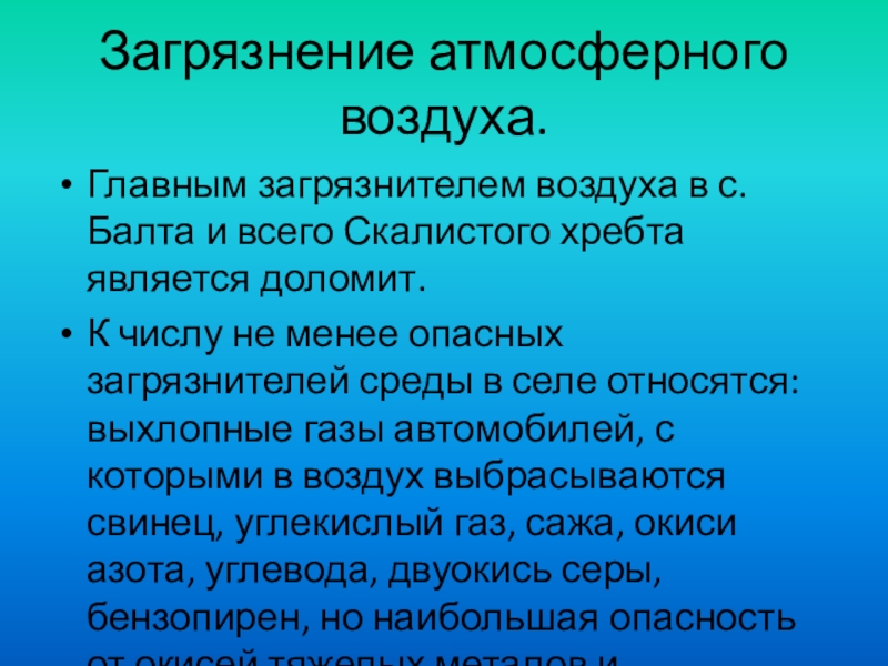 Слайд 8Загрязнение атмосферного воздуха.