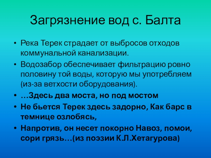 Слайд 10Загрязнение вод с. Балта