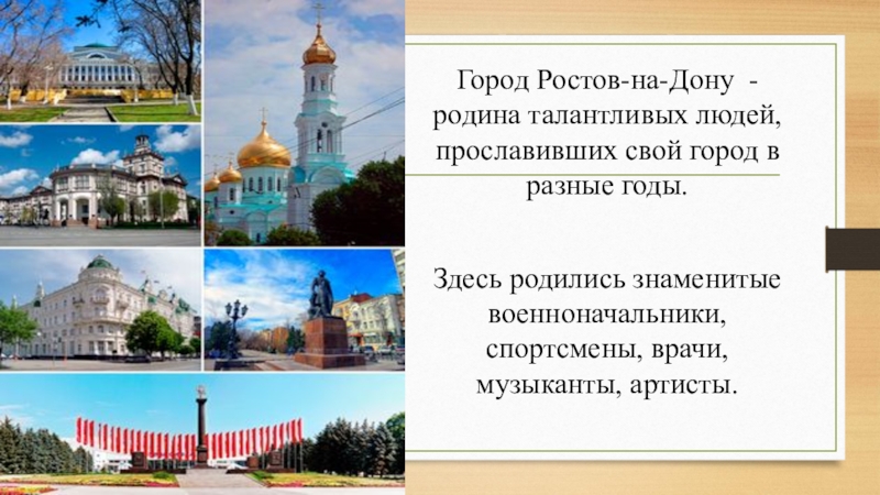Слайд 2Город Ростов-на-Дону - родина талантливых людей, прославивших свой город в разные