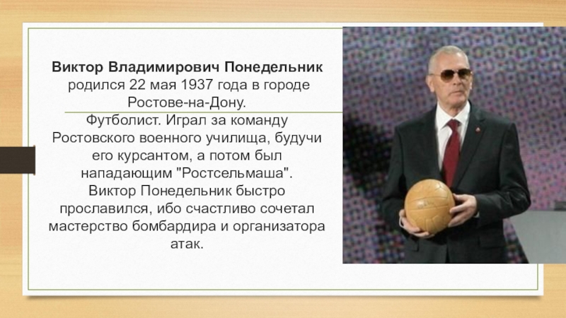 Виктор Понедельник быстро прославился, ибо счастливо сочетал мастерство бомбардира и организатора атак.