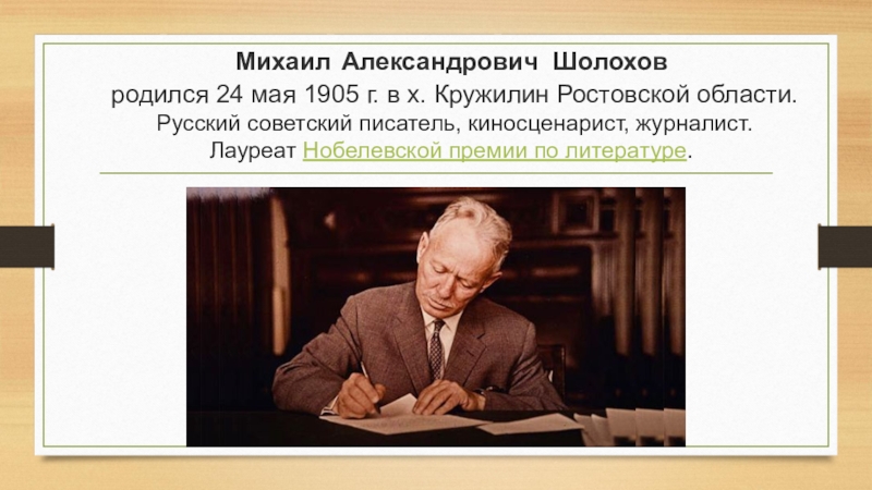 Русский советский писатель, киносценарист, журналист. Лауреат Нобелевской премии по литературе.