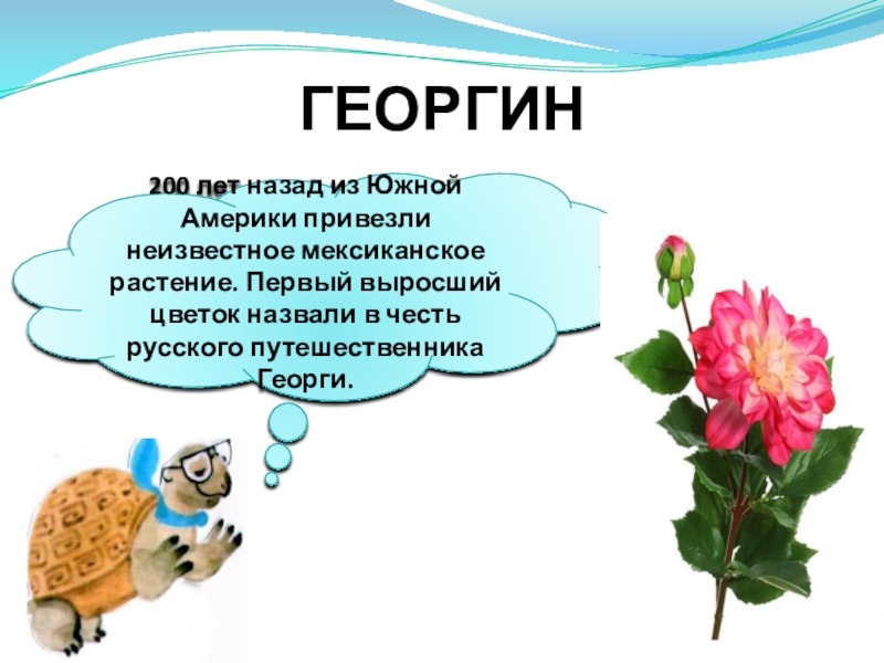 ГЕОРГИН200 лет назад из Южной Америки привезли неизвестное мексиканское растение. Первый выросший цветок назвали в честь русского