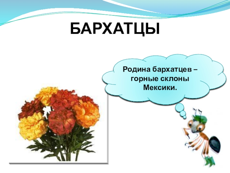 БАРХАТЦЫРодина бархатцев – горные склоны Мексики.