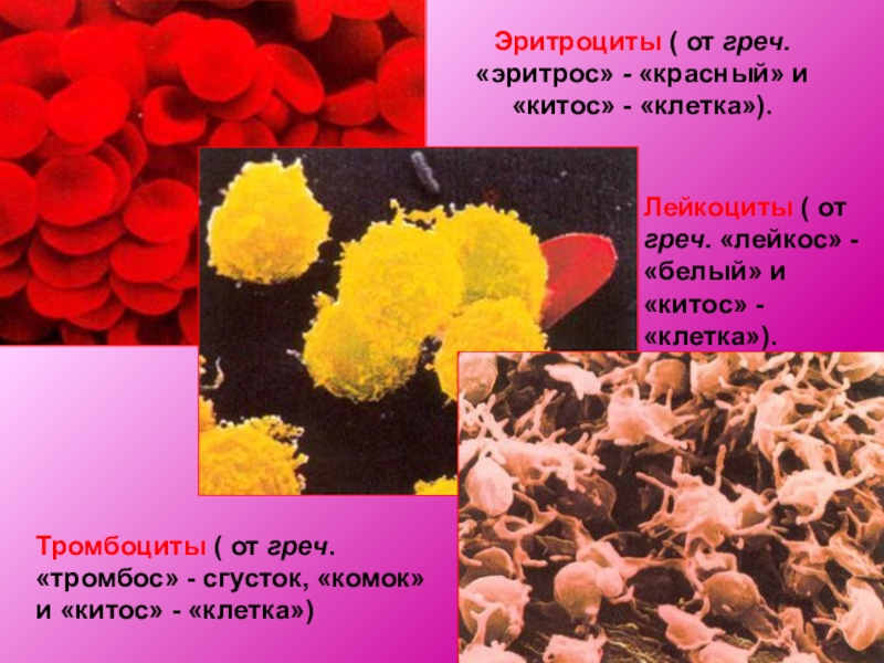 Тромбоциты ( от греч. «тромбос» - сгусток, «комок» и «китос» - «клетка»)