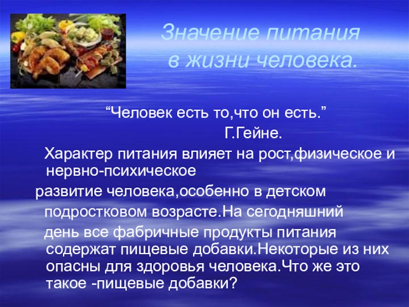 день все фабричные продукты питания содержат пищевые добавки.Некоторые из них опасны для здоровья человека.Что же это такое -пищевые добавки?