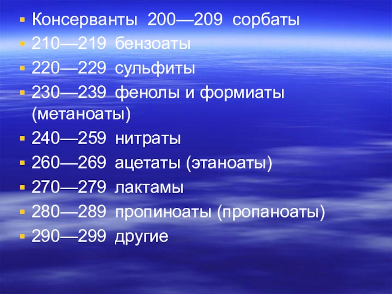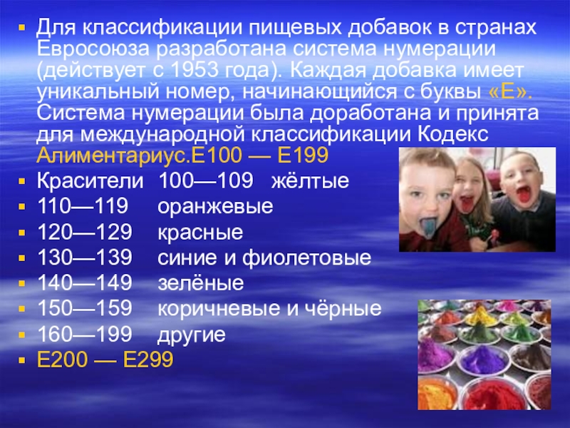 Для классификации пищевых добавок в странах Евросоюза разработана система нумерации (действует