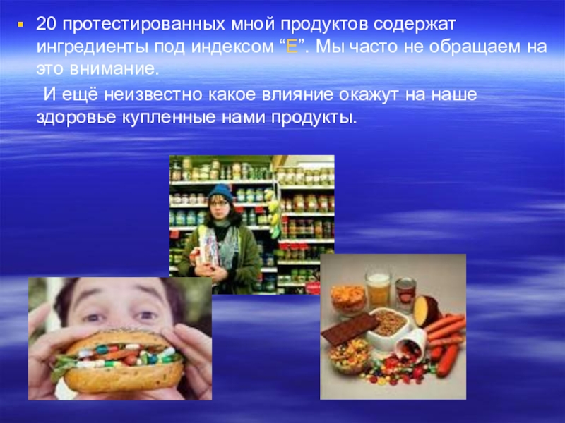 20 протестированных мной продуктов содержат ингредиенты под индексом “Е”. Мы часто