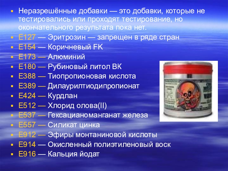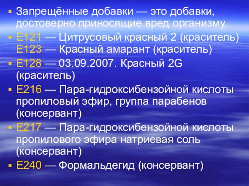 Запрещённые добавки — это добавки, достоверно приносящие вред организму.
