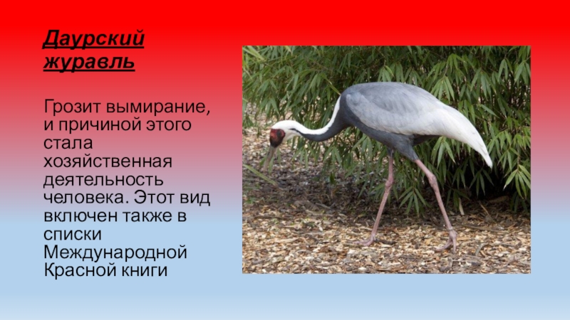 Грозит вымирание, и причиной этого стала хозяйственная деятельность человека.